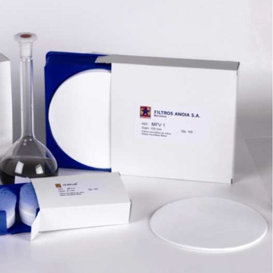 Papel microfibra de vidrio plano, sin ligantes, tipo MFV4 de 55mmØ., 100ud.