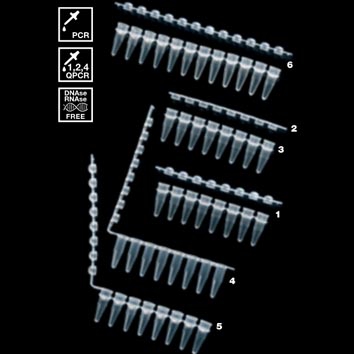 Tiras de 12 tubos de 0,2ml y tiras de 12 tapones redondeados.