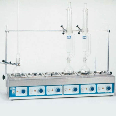 - Soporte posterior con varilla regulable en altura e inclinación para facilitar la sujeción de matraces, refrigerantes, etc...