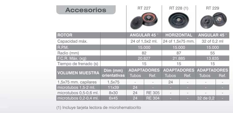 Rotores, adaptadores y tubos, accesorios no incluidos con el equipo. Se tienen que pedir aparte.